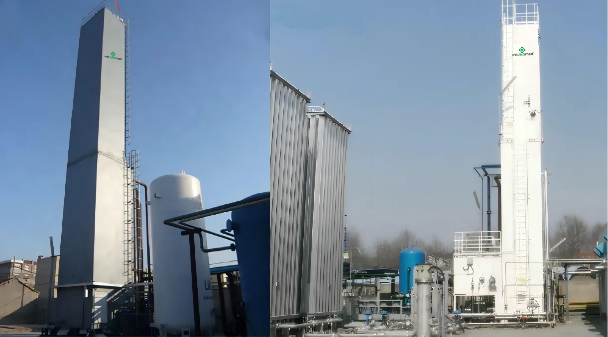 3. Oddělení vzduchu: V destilační sloupci jsou stoupající plyn a následná kapalina podrobena přenosu tepla a hmoty na desce nebo balení; Zvyšuje se obsah dusíku ve stoupajícím plynu, zatímco se zvyšuje obsah kyslíku v následné kapalině.